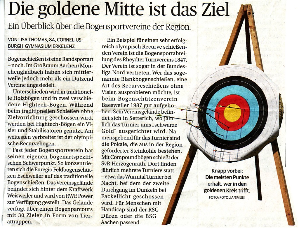 Zeitungsartikel über die erfolgreichen Bogenschützen vom BV Baesweiler |