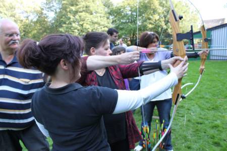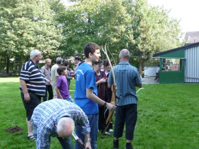 Zum Abtrainieren der kleinen unerwünschten, neu zu gewonnenen Kalorien konnte dann jeder nach Wunsch ein paar Pfeile schiessen. Wolfgang und Thomas, unsere Vereinsvorsitzenden hatten sich hierzu einige interessante Spielchen ausgedacht.