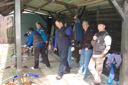 Um 13.00 Uhr begrüßte Wolfgang die Teilnehmer und eröffnete mit dem Einschießen die Meisterschaft.