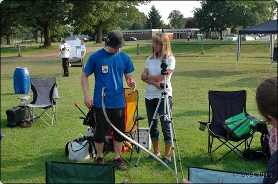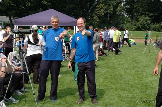 Jörg, der morgens noch in der Blankbogenklasse angetreten war, zog sich schnell um und erweiterte das Kampfrichterteam. |