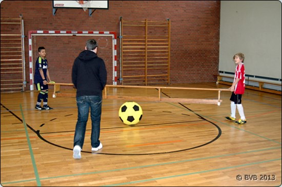 Nachdem die Schuhe gebunden waren und man sich warm gespielt hatte, suchten Luca und Nico die Mannschafften aus. |