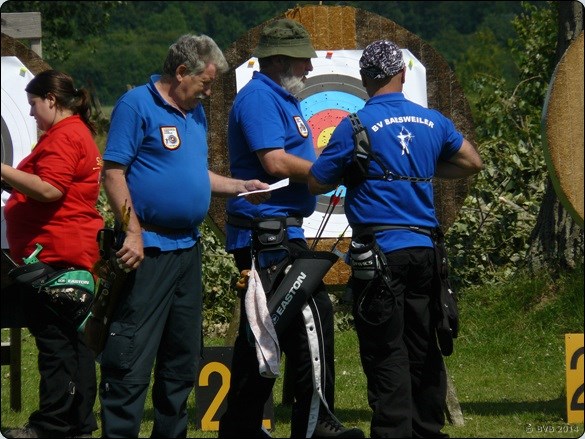 Für die Recurver starteten Thomas Weber und Willi Berau. In der Schützenklasse belegte Thomas einen tollen 5. Platz. Er lag Ringgleich mit dem Viertplatzierten; die Anzahl der geschossenen Xer entschied die Platzierung. Für Willi lief es in der Seniorenklasse leider nicht ganz so gut - dafür war bestimmt der einige Male auffrischende Wind verantwortlich. |