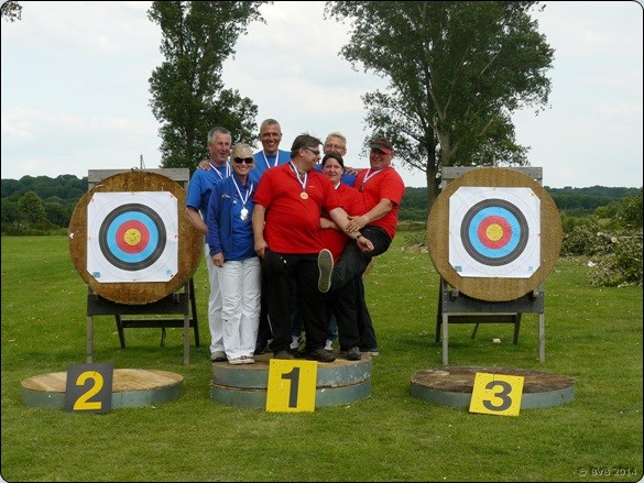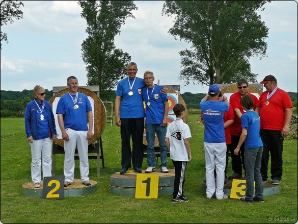 In der Mannschaftswertung belegte die Blankbogen-Mannschaft unseres Vereins mit den Schützen Dieter Erkens, Wolfgang Faßbinder und Hubert Wirtz den ersten Rang. Platz 2 belegte die Mannschaft des Gastgebervereins SSK Kerpen vor der Mannschaft des SBC Walbeck. |